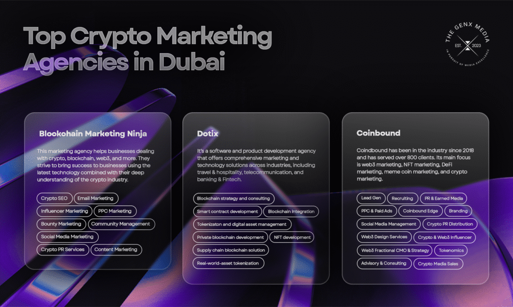 Dubai has always been at the forefront of innovation, technology adaptation, and ease of doing business, allowing it to grow at a faster rate. Cryptocurrency or blockchain marketing services providers are those industries that have seen a boom in the recent past, shaping the future of digital payments, finance, and crypto marketing.